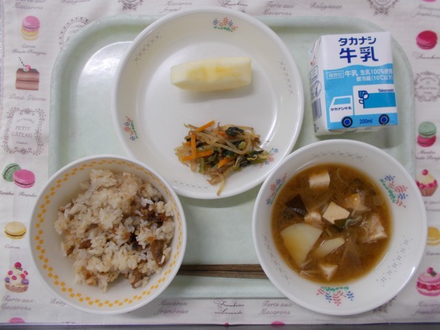 さんまごはんは、細かく刻んださんまを揚げて、甘辛ダレをからめたあとに、ごはんと混ぜ合わせて作っています。魚が苦手な子でも食べられたようで、全体的によく食べていました。