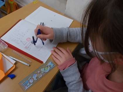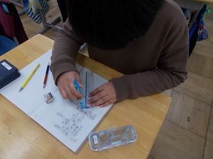 コンパスと定規を使って、正確な図が描けるよう頑張っています。