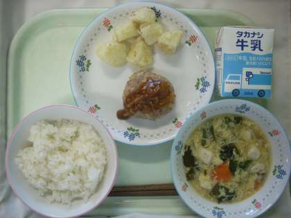 ・ごま粉ふきいも ・にらたまスープ ・牛乳