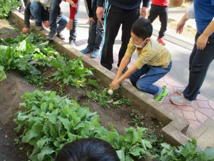 今日はかぶ、二十日大根、ほうれんそう、小松菜の収穫です。