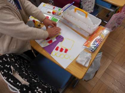 【1年生】図工 公開日 2021/02/26 更新日 2021/02/26 学校日記 図工では、身の回りの物を使ってスタンプをしました。ペットボトルのキャップやプリンカップ、スポンジ等いろいろな形のスタンプを楽しみました。中には手全体に絵の具を塗って豪快にスタンプをする子供も見られました。 出来上がった作品は、保護者会の際に廊下掲示をを予定しています。 1年
