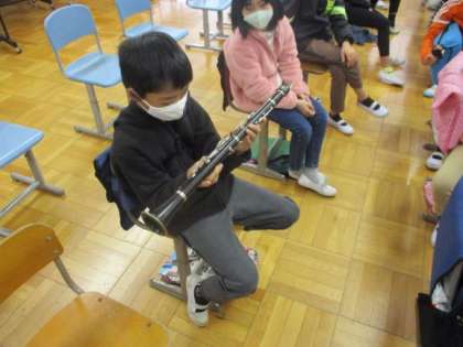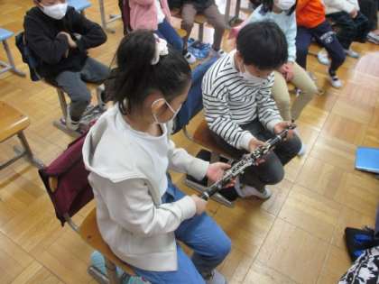 音楽では、鑑賞の時間があります。今回注目した楽器は「クラリネット」です。実際に触れてみると、、、