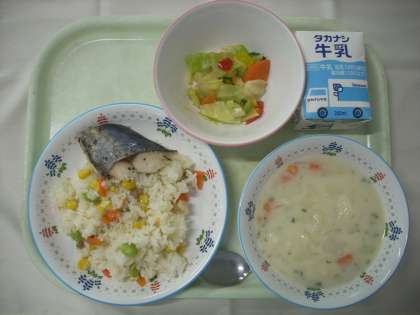・コーンピラフ ・鰆のバジル焼き