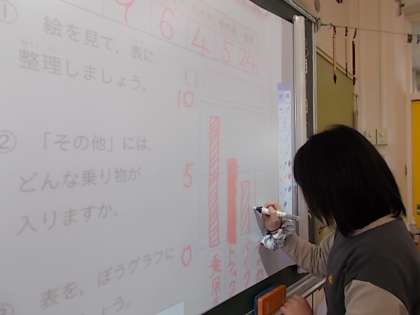 データを「正の字」を使って集計したり、表やグラフに表したりしました。