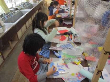 “宇宙”や“桜”など、子供たちのイメージした作品は、どれも光を透かすことで、とても綺麗な作品となりました。