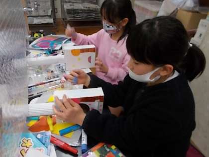 出来上がるとゴムの弦を弾いて演奏するなど、とても嬉しそうでした。