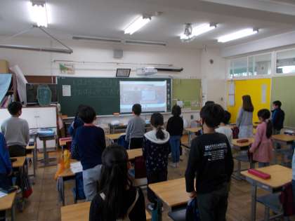 他の児童は教室で見守りながら、一緒にもらうイメージで同時に礼をしました。
