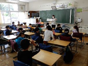 1年生は5クラスともほぼ30人学級です。幼稚園や保育園に比べると、たくさんのお友達が教室にいる中で授業を受けているので、とまどうこともあると思いますが、先生の話を聞くときには静かに聞いて、問いかけには元気に答えています。