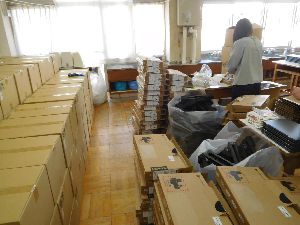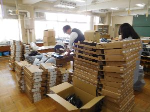 ようやくクロムブックの整備の順番が回ってきました。今日から一週間かけて機器のセットアップが行われます。全部で700台以上の端末を箱から出すだけで大変な作業です。今週いっぱいで終了し、学校に引き渡される予定です。ただ、入学児童数が増えたためにまだ全児童分の追加配備ができておらず、早期の配備を市に要請中です。