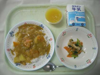 カレーは1年生も食べやすいように、辛さ控えめにしています。