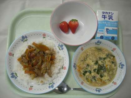 ・ホイコーロー丼 ・にらたまスープ