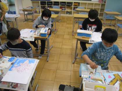 絵の具で色を塗ると、春らしい雰囲気が出てきました。