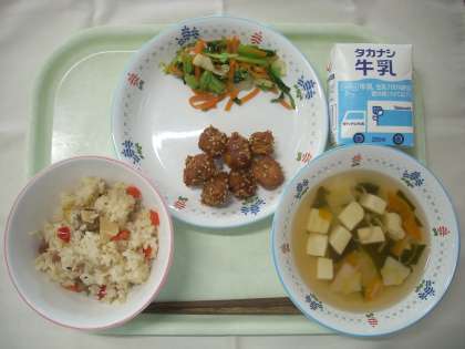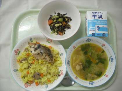 ・青大豆とひじきのサラダ ・ABCパスタスープ ・牛乳