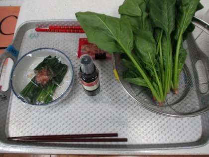 今回の学習を生かして、自主学習では、家庭でほうれん草のおひたしを作り、手順をまとめている子もいました。