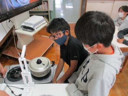 今日から実際に火を付けたり、ほうれん草を茹でたりして、その手順や変化を学びました。