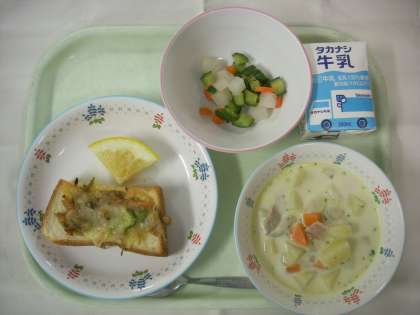 ・クリームスープ ・果物(美生柑) ・牛乳