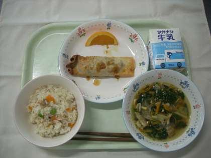 ・中華スープ ・果物(きよみオレンジ) ・牛乳