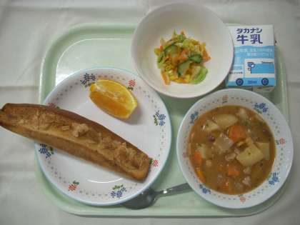 ・キャベツとコーンのサラダ ・果物(デコポン) ・牛乳