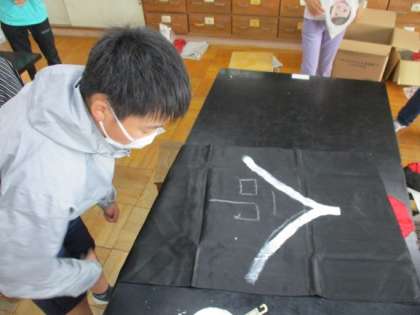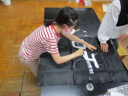 今日は、法被に漢字を書きました。