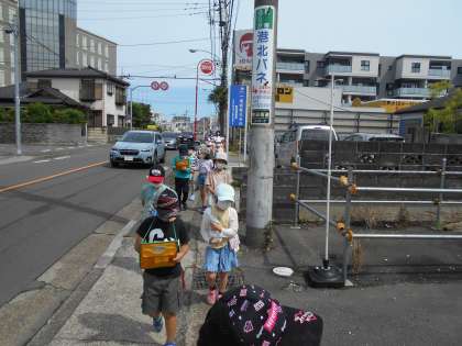 生活科では、先週から今週にかけて2クラス合同で町たんけんに出かけました。北と南の2回に分けて、南つくし野小の学区を探検しました。