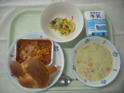 ・グリーンサラダ ・豆乳コーンスープ ・牛乳