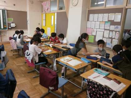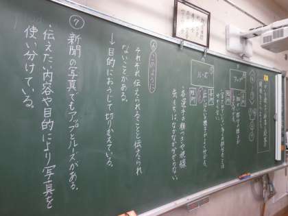 国語では「アップとルーズで伝える」という学習を行いました。ここでは、アップとルーズを使い分けることで、自分が伝えたい情報をより分かりやすく相手に伝えることができることを学びました。「総合の調べ学習でも使えそうだね。」「先生、新聞に載っているこの写真はアップですよね。」といった声が聞こえ、国語の学習を他教科に広げる姿に感心しています。