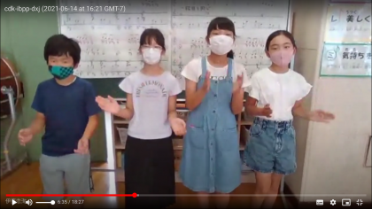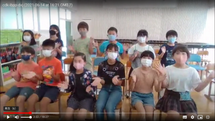 今日の音楽朝会はリモートで「学園天国」の音楽でボディパーカッションに挑戦しました。