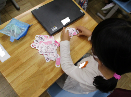 算数では足し算、引き算の学習の際にカードも使って学習しています。