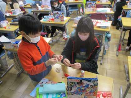 コイルを巻き、電流を流すと磁石と同じような性質が生まれることに、活動を通して気付いていきました。回路を作ることに苦戦している友達を助ける姿もあり、大変立派です!