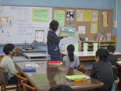 図書では、いつも図書支援員の先生に 読み聞かせをしてもらっています。