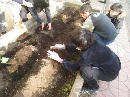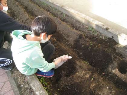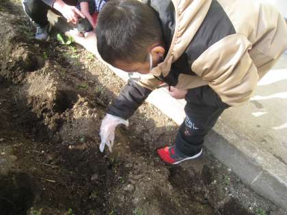 3学期最初の総合の時間は、チューリップの球根を植えました。