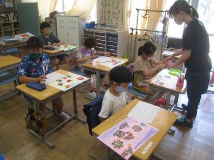 作品を色画用紙に貼り付けて絵を描き、みんなに紹介することができました。