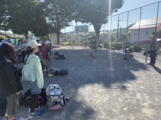 写真は朝の出発式の様子です。