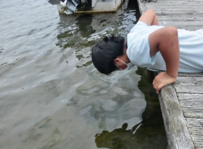 日光の魅力の一つは「水がきれい」です。子供たちと一緒に水の中を見たり、手を入れてみたりしました。1枚目は、足尾銅山近くの渡良瀬川です。水は冷たく澄んでいます。小魚やオタマジャクシがいました。2枚目は、小田代原の川です。ラムサール条約湿地に登録され保護されています。子供たちの第一声は、「まるでジブリの世界」です。水温が低く、とてもきれいです。生き物は見付けられませんでした。3枚目は、中禅寺湖です。桟橋の足にエビがたくさんいました。マスの稚魚、コイも泳いでいます。子供たちがエビを捕まえようとしましたが、簡単には捕まりません。