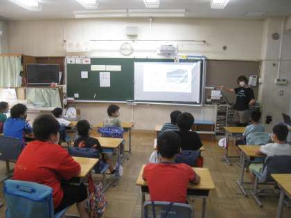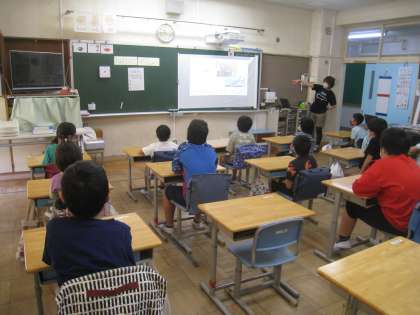 子供たちは 行き先や行くときに乗る電車やバスの話を聞いて目を輝かせていました。