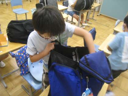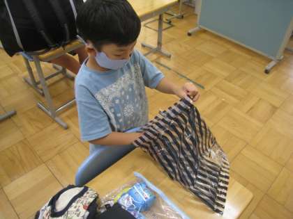 必要なものが入っているかを確かめ、バッグの中にきれいに入れる練習をしました。