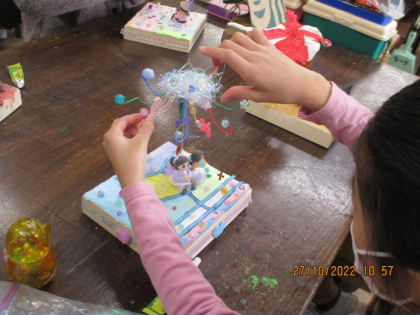 作品展に向けて「ワイヤー&クレイワールド」の仕上げをしました。