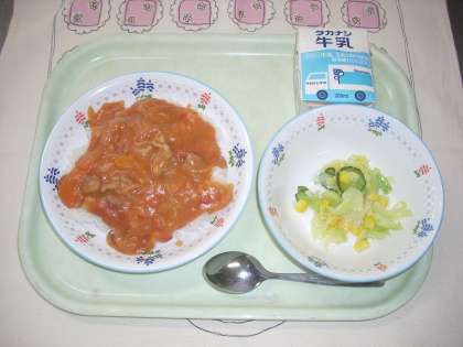 【11月2日のこんだて】 ○ハッシュドポーク(ライス) ○フレンチサラダ ○牛乳