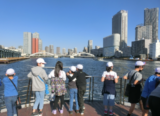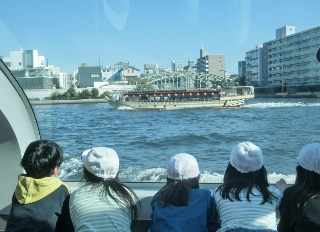 【11月8日・4年生】水上バス 公開日 2022/11/08 更新日 2022/11/08 学校日記 水上バスに乗船です。松本零士デザインの近未来的な船です。 子どもたちは屋形船をイメージしていたらしく、ちょっと驚きの様子です。 4年