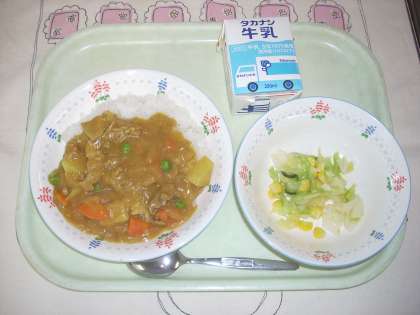 【給食・11月9日】 公開日 2022/11/09 更新日 2022/11/09 学校日記 【11月9日のこんだて】 ○カレーライス ○キャベツとコーンのサラダ ○牛乳 今日は給食で大人気のカレーライスでした。 給食後、配膳室をのぞくと、各クラス空っぽの食缶が並んでいました。 給食