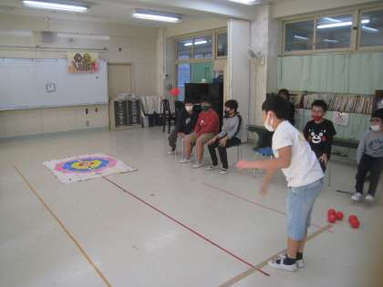ゲームでは、カップカーリングやボッチャをして みんなで楽しみました。