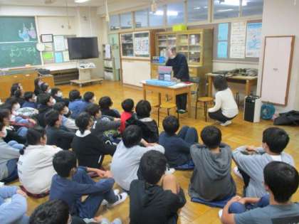 6年生は、ゲストの方をお招きし、戦争中に体験したことを語っていただきました。当時の資料や紙芝居を踏まえて話していただきました。