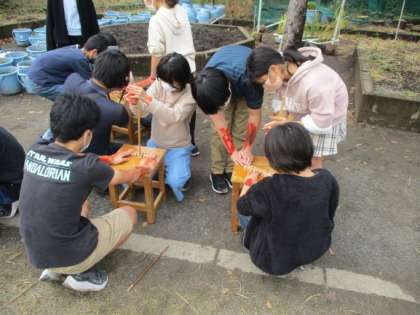 6年生は、本日もゲストをお招きし、縄文体験をしました。