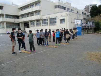 「火起こし」や「弓矢」などを実際に体験してみました。