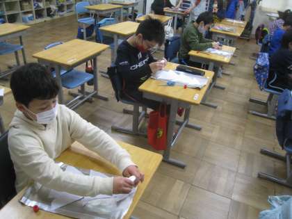 図工では、「キラキラ冬のかざり」の制作が始まりました。