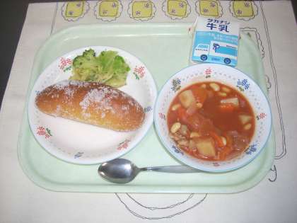 今日は、給食室でコッペパンを揚げ、1つ1つにグラニュー糖をまぶして作りました。返ってきた食缶はほぼ空っぽでした。