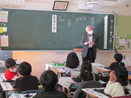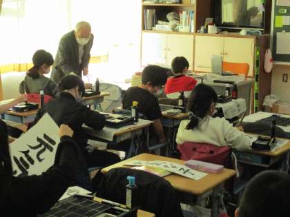 12月15日(木)、16日(金)に地域の宮本先生にお越しいただき、書き初めの指導をしていただきました。それぞれの文字のポイントを教わり、一生懸命に練習しました。