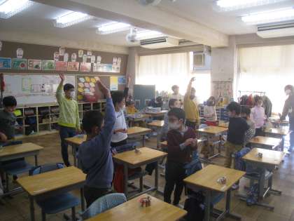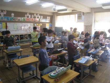 「ジングルベル」や「赤鼻のトナカイ」の曲に合わせて すずやカスタネットを演奏しました。