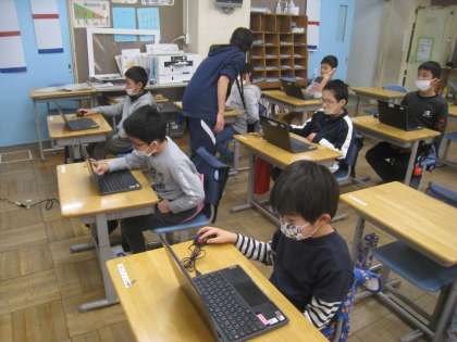 総合の時間では、クロムブックを使った学習をすすめています。
