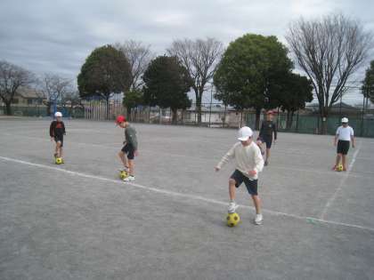 足でボールをたくさんタッチしながら 慣れていっているところです。